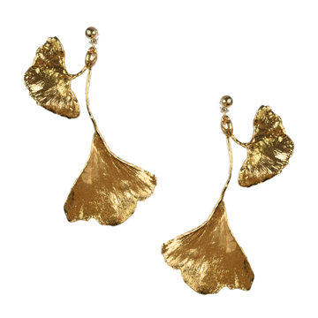 Plucked directly from the tree, a real cluster of two ginkgo leaves was expertly cast to preserve every intricate detail. These earrings make a bold and elegant statement, making you feel like an ethereal art nouveau muse adorned in golden leaves.